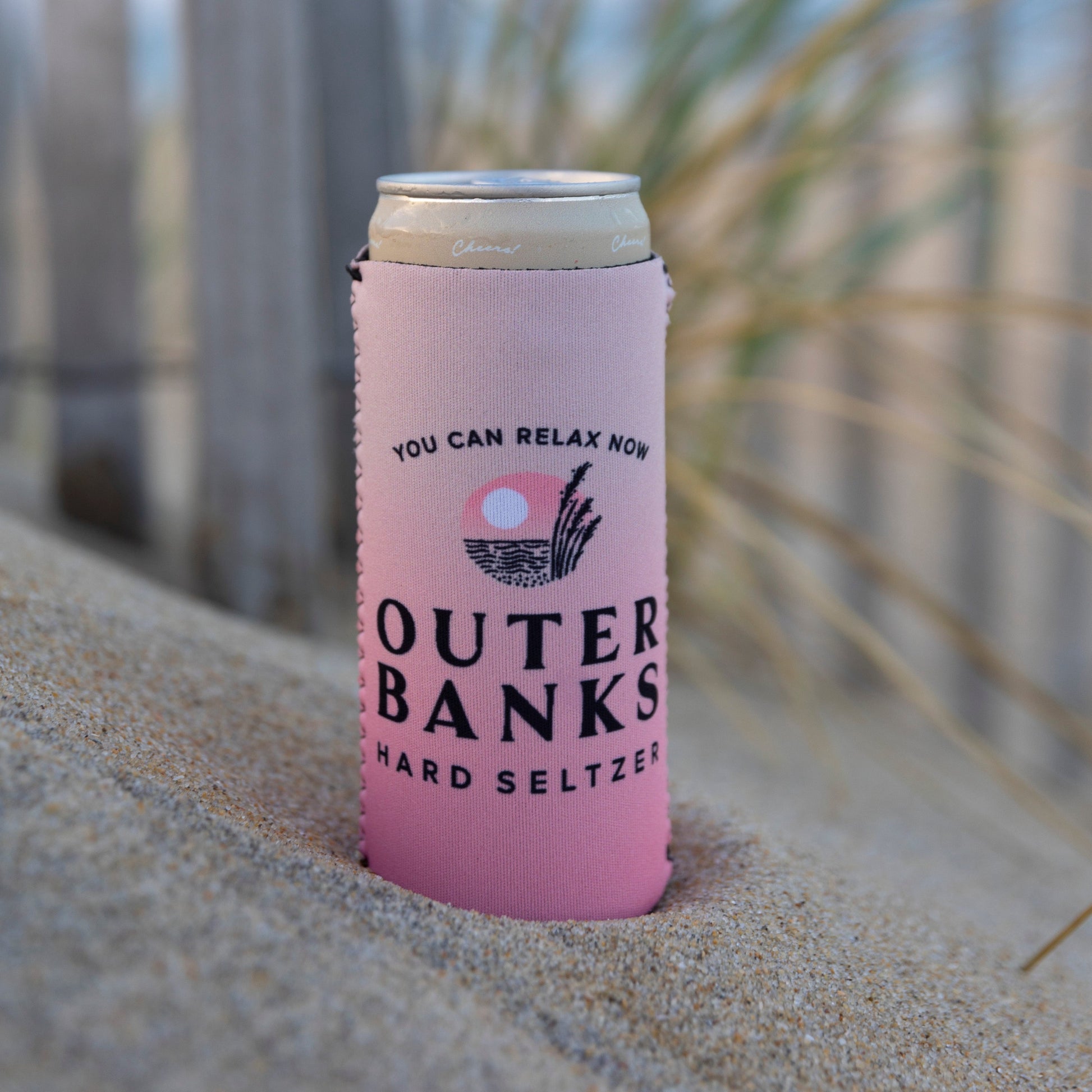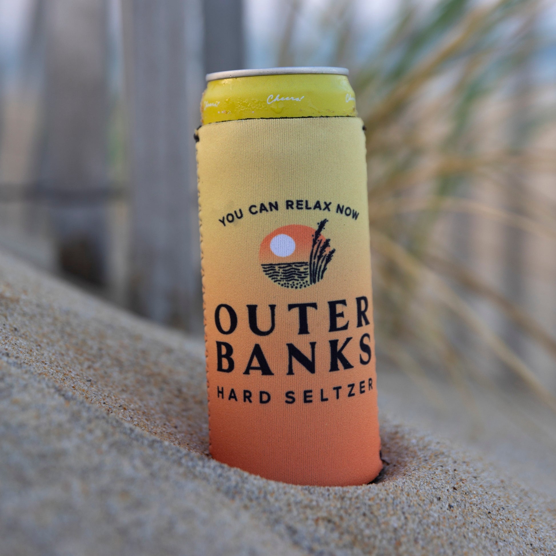 Slim can coozie for a 12 ounce slim can. The color fade on the can is replicated from the Outer Banks Hard Seltzer can.