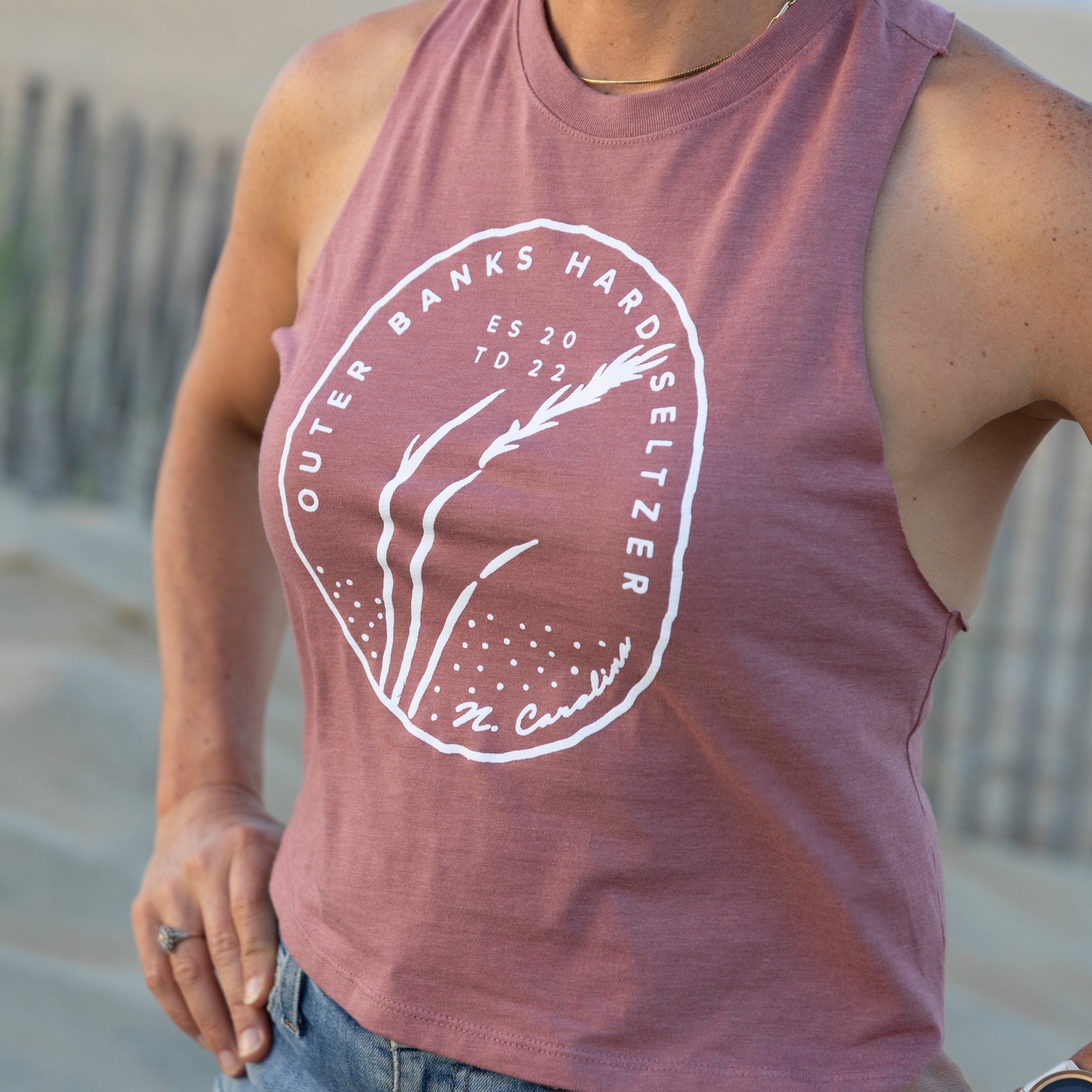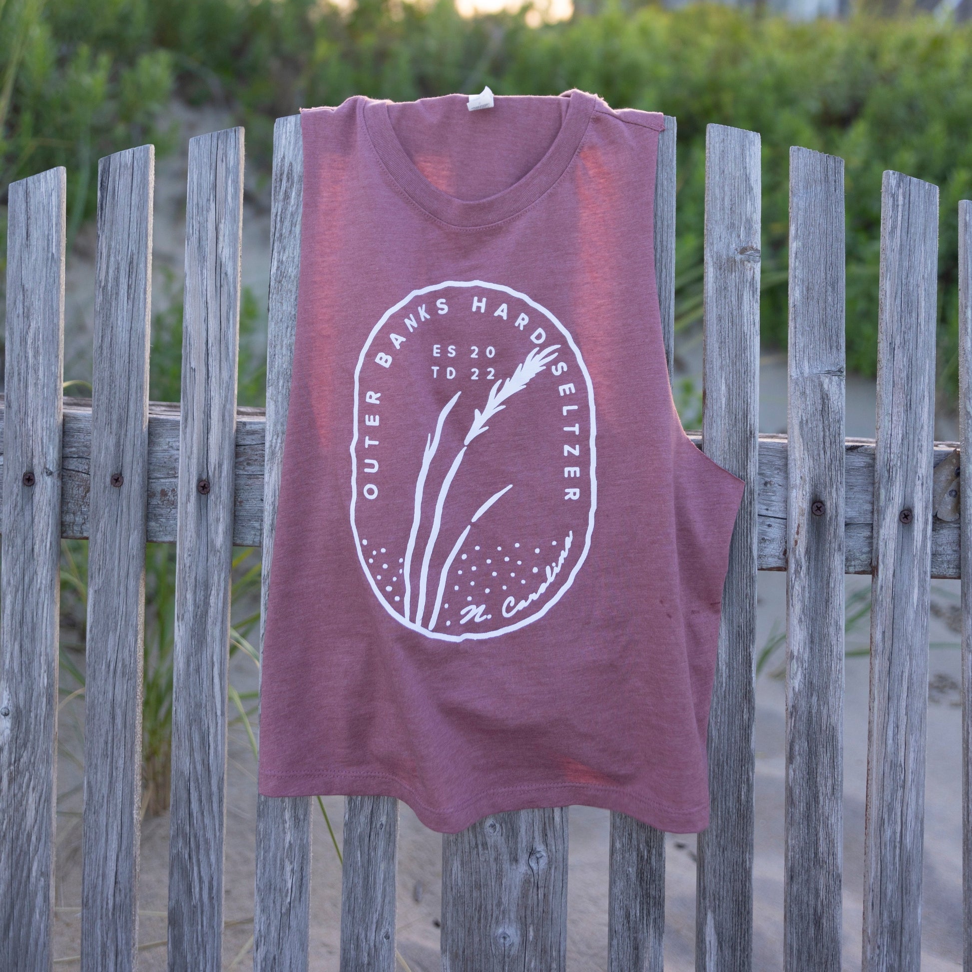 Heather mauve color in the softest material with a white Outer Banks Hard Seltzer icon.